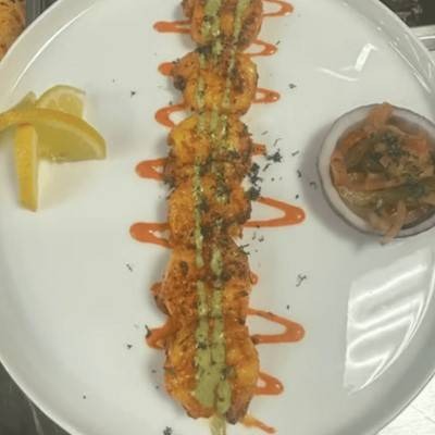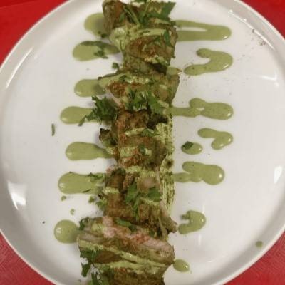 | Tender pieces of chicken kabab, served with vibrant green ch... | ||