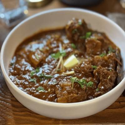 | Tender goat chunks in a rich curry sauce, garnished with cil... | ||