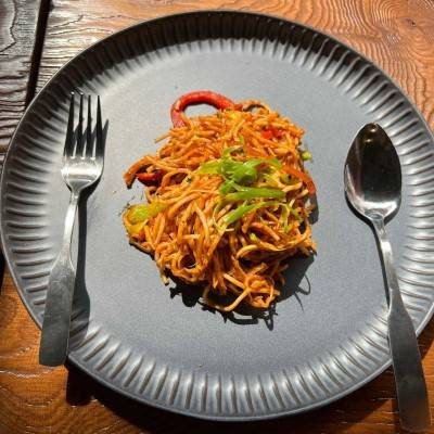 | A combination of noodles, bell peppers, onions, and carrots... | ||