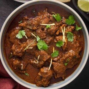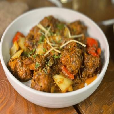 | Tender goat chunks in a rich curry sauce, garnished with cil... | ||